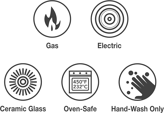 - Versatile and User-Friendly: Oven-safe up to 450°F (232°C) and compatible with gas, electric, ceramic glass, and induction cooktops. Integral cast iron handles and a stainless steel lid knob ensure a secure grip and elegant functionality.