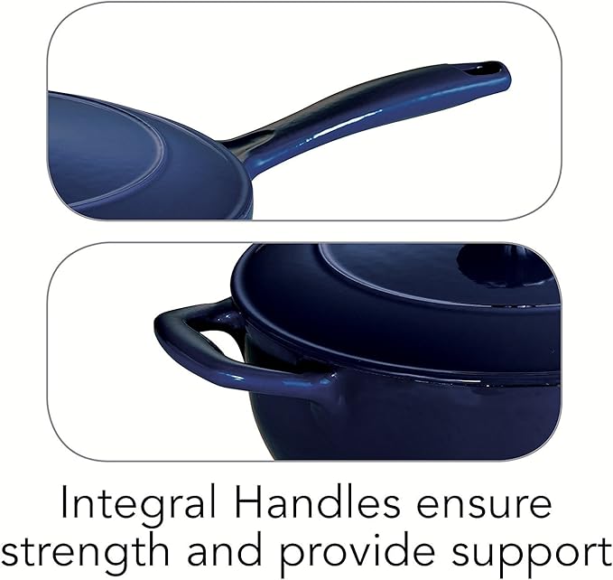 - Versatile and User-Friendly: Oven-safe up to 450°F (232°C) and compatible with gas, electric, ceramic glass, and induction cooktops. Integral cast iron handles and a stainless steel lid knob ensure a secure grip and elegant functionality.