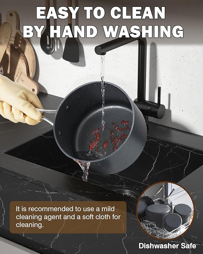 - Even Heat Distribution: Nonstick saucepan is made of heavy-duty aluminum that conducts heat quickly and evenly, resulting in evenly heated food and better cooking results