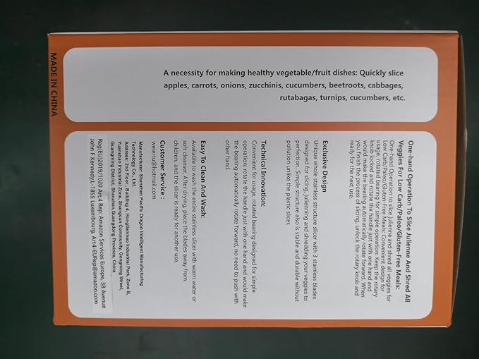 - ā Premium Quality Materials- Made of 304 stainless steel, 6 blades (The 1 flat blades are fixed on the main body( take it off to change thick and thin blades), the other 4 blades are in the plastic storage box) which is superior quality, food-grade stainless, markedly stronger than any of the others which are old & weak.