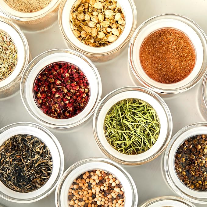 - STYLISH, SIMPLICITY STORGE JARS: Zens sleek glass canisters with airtight lids, the neat style keeps your kitchen tidy never like before. the hand-blown clear glass lid makes it very easy to find when storing spices in your drawer. It also doubles as a cute food tray for your favourite snacks which other bamboo lids does not. Isn’t it time to building your full pantry with a new makeover?