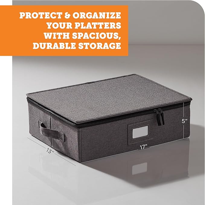 storageLAB Cup and Mug Storage Containers, Hard Shell Storage Case with Felt Dividers for Cups, Mugs, Dishes, and Glasses, Ideal for Kitchen Organizing and Moving Supplies - 1 Pack, Gray
