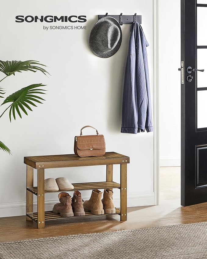 SONGMICS Shoe Rack Bench, 3-Tier Bamboo Shoe Storage Organizer, Entryway Bench, Holds Up to 286 lb, 11.3 x 27.6 x 17.8 Inches, for Entryway Bathroom Bedroom, Yellow Brown ULBS04WL