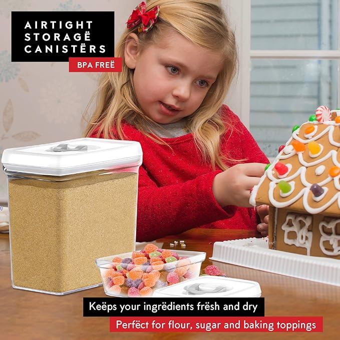 - Many Great Uses: These air-tight food-safe keepers are not only for flour and sugar, it is also perfect for storing other dry foods such as rice, grain, cereals, nuts, beans, chips, snacks, crackers, cookies, and pasta. Especially designed to fit a standard size pantry shelf allowing you to organize your kitchen neat like never.