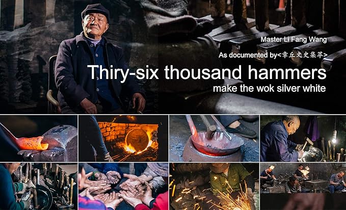 - Chinese wok, made in China. Our woks have been through 12 processes, 36,000 times of hand-hammering. It shines like a mirror. You can see all the hammer prints but hardly feel them. Mirror surface allows ingredients to slide smoothly inside the wok.