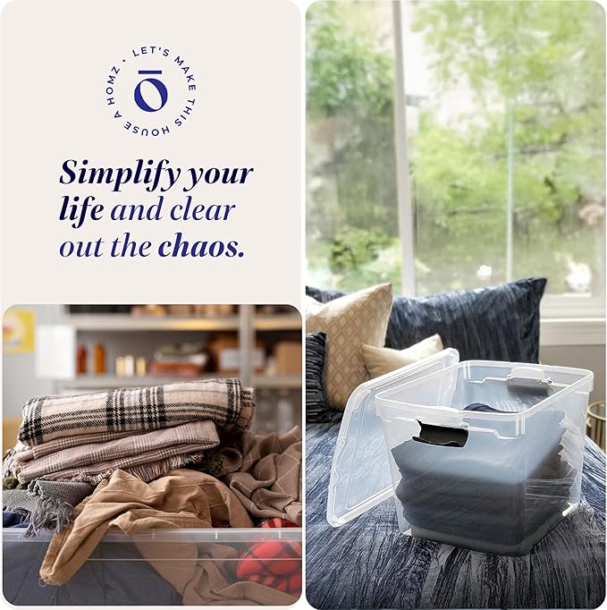 HOMZ 4-Pack Latching Lid, Large Clear Plastic Storage Bins with Lids, 31 Quart, Gray Latch - Stackable Container Boxes for Home, Bathroom, and Office Organization