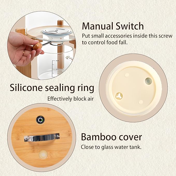 - 【Sealed and Moisture-proof】The lid of this cereal container is made of natural bamboo, with a food-grade PP material sealing ring, which has a better sealing effect, is moisture-proof and dust-proof.In addition, the lid has a manual bleed valve and thermometer.