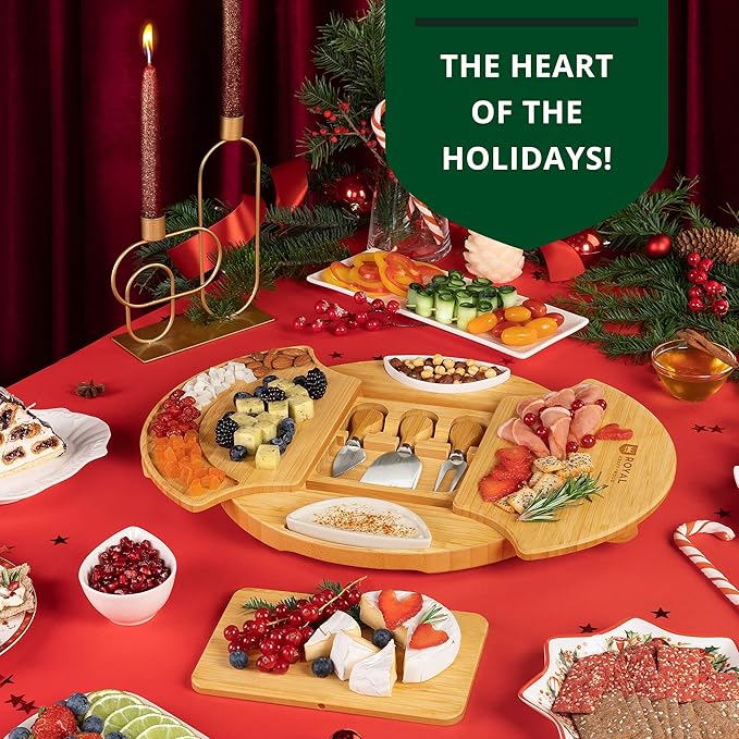 - ๐ง ๐บ๐ด๐จ๐น๐ป ๐บ๐ป๐ถ๐น๐จ๐ฎ๐ฌ & ๐ฌ๐จ๐บ๐ ๐ช๐ณ๐ฌ๐จ๐ต: The concealed drawer within this cheese board set contains all the serving accouterments you'll need for your next tasting. It includes up to three different cheese cutting knives, 2 side ceramic half bowls. With our bamboo cheese board set hosting has become possible even on the go. Finally, an all-inclusive charcuterie board set, so quit searching for matching cutlery sets or missing parts around the kitchen!