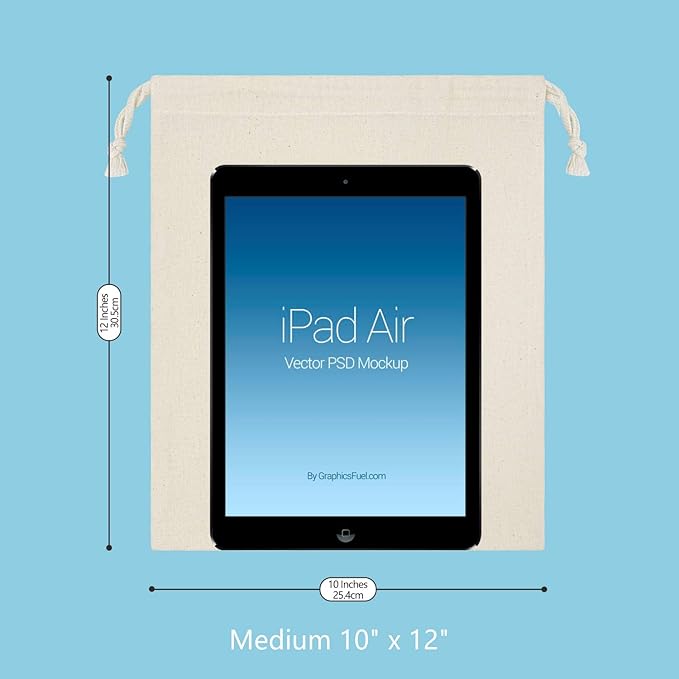 - DURABILITY: 10" x 12", made of 100% natural cotton, the stitches are fine and strong againt tearing. No matter the weight of the stored item, it will not tear or break easily. It's also extremely light at just 0.07 pounds, making it very portable.