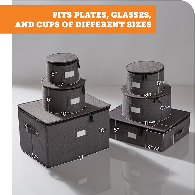 storageLAB China Storage Containers, Hard Shell Case with Felt Dividers for Charger Plates, and Dishes, Ideal for Kitchen Organization, Moving Supplies, and Fine China Storage - 6-Piece Set, Gray