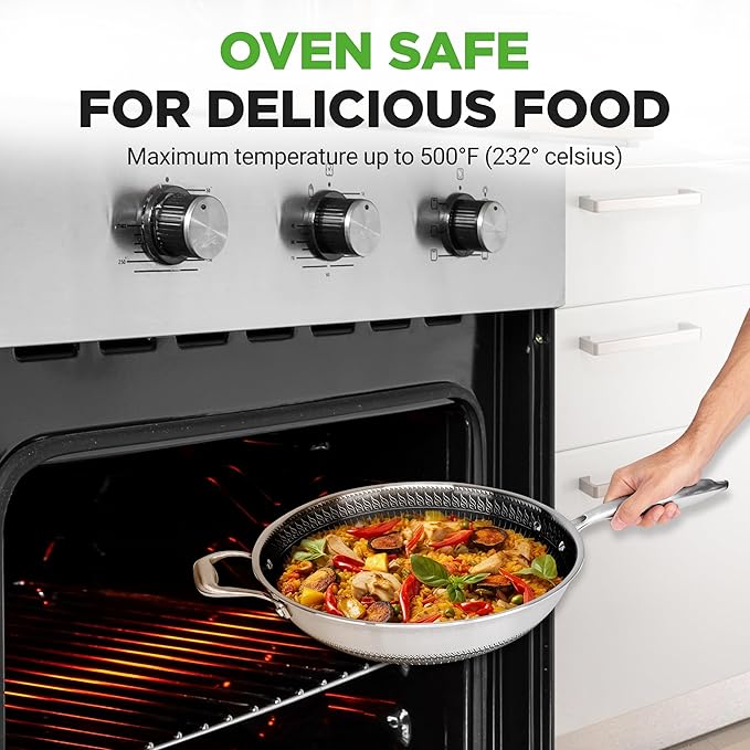 - EVEN COOKING ALL-AROUND: Nutrichef stainless steel cookware wok is made w/ triply composite structure-aluminum core fuses between two layers of stainless steel for quick & even heat transfer for even cooking all-around. Oven safe up to 500°F