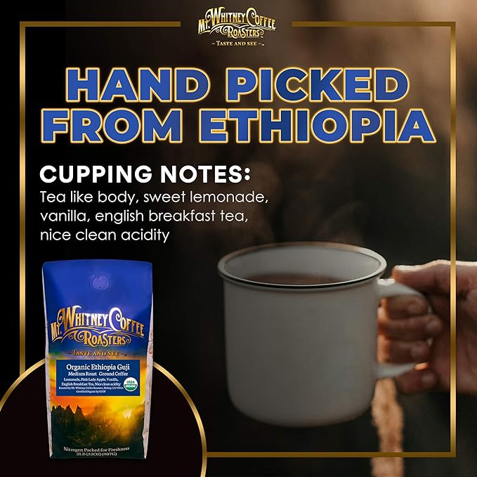 - SINGLE ORIGIN FOR SUPERIOR TASTE & QUALITY - Mt. Whitney’s Organic Ethiopia Guji Coffee is a single-origin coffee, sourced from a single country and single crop. Single-origin coffee accentuates certain flavor attributes specific to a region, and are of superior taste and quality.