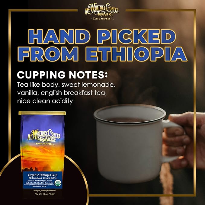- SINGLE ORIGIN FOR SUPERIOR TASTE & QUALITY - Mt. Whitney’s Organic Ethiopia Guji Coffee is a single-origin coffee, sourced from a single country and single crop. Single-origin coffee accentuates certain flavor attributes specific to a region, and are of superior taste and quality.
