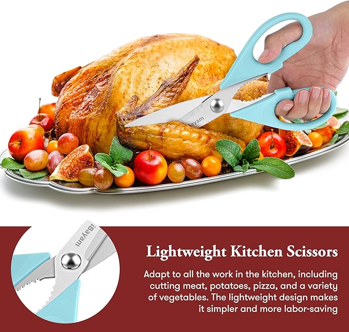 Kitchen Shears, iBayam Kitchen Scissors All Purpose Heavy Duty Meat Scissors Poultry Shears, Dishwasher Safe Food Cooking Scissor Stainless Steel Utility Scissor, 2-Pack, Light Blue, Pistachio