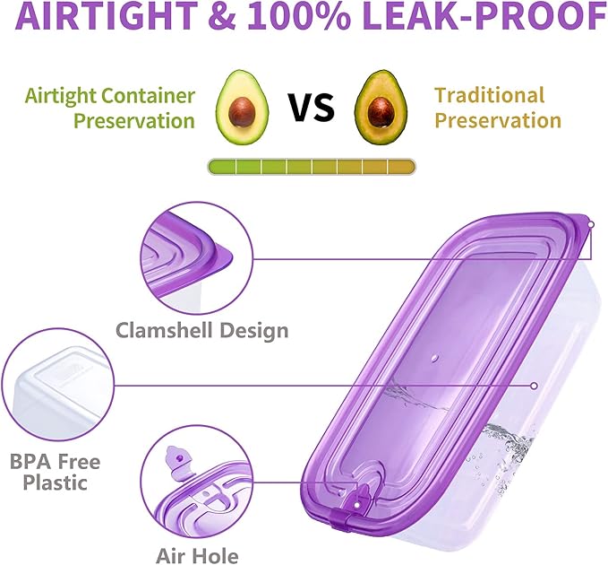 - Airtight and Leak-proof:Interlocking lid design with air hole ,could block air and avoid moisture evaporating,ensuring the freshness of food,airtight and leak-proof