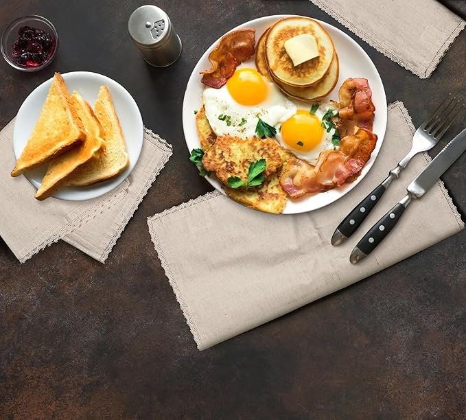 Natural Color Blend Cotton Linen Napkins Set of 12 - with Lace 18x18 Inch Decorative Elegant Washable Reusable Flax Dinner Napkin for Dining Table Décor Wedding Party Christmas New Year & Everyday Use