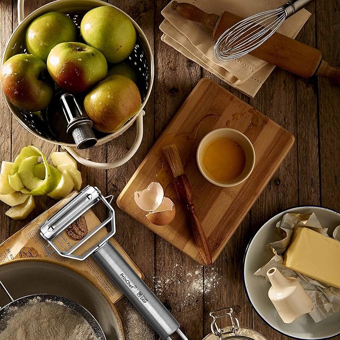 - 【Heavy Duty & Ultra Sharp】 The whole body of the peeler is made of premium food-grade stainless steel which is heavy duty and no rust. Razor sharp blade offers you a smooth and continuous peeling, just like cutting through butter. Food will not get clogged in so you don’t need to keep cleaning the blade when using.