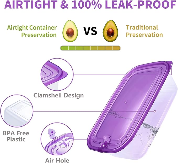 - Airtight & Leak-proof:Interlocking lid design with air hole ,could block air and avoid moisture evaporating,ensuring the freshness of food,airtight and leak-proof
