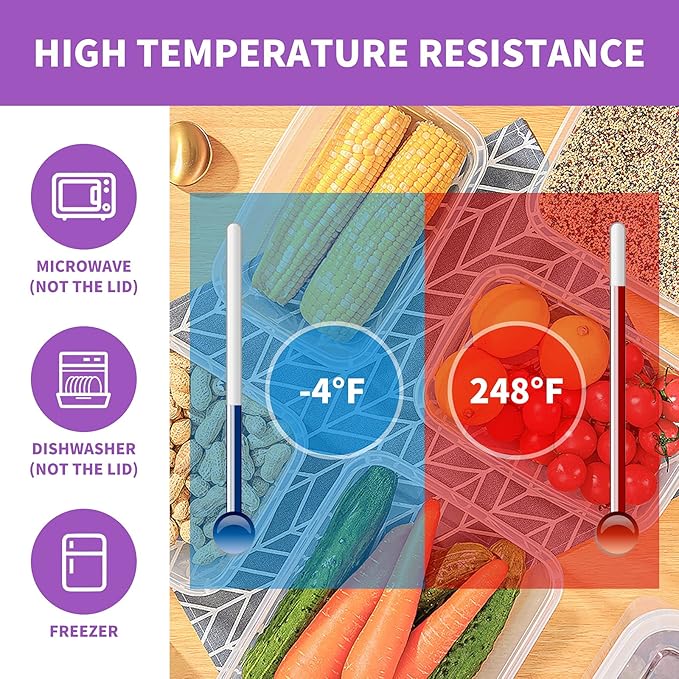- Microwave,dishwasher,freeze safe:Our food containers could resist rapid temperature changes,making them safe to use on the top-rack of your dishwasher,microwave(without lids) and freeze