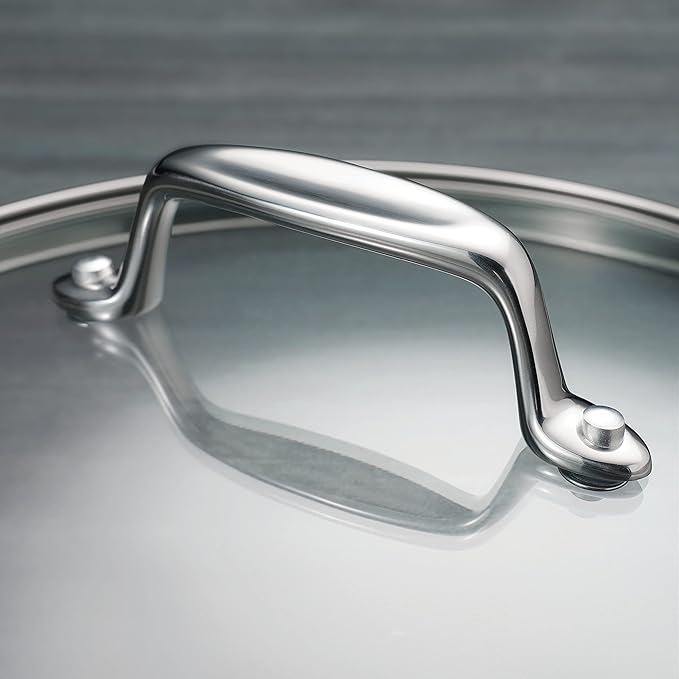 - Transparent Glass Lid & Comfortable Grip Handles: The clear glass lid locks in moisture and flavor while allowing you to monitor cooking progress easily. The securely riveted, ergonomic stainless steel handles provide a comfortable, firm grip for safe and confident handling.