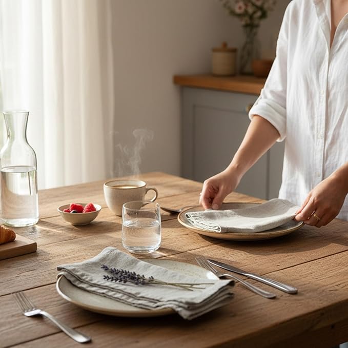 - Quality craftmanship created from pure french flax with the stitching perfectly matched to the same color as each napkin and the texture of the fabric feels very soft. OEKO-TEX Standard 100 certification (tested and proven free of harmful levels of toxic substances)