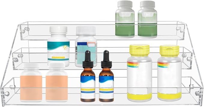 - MULTIPLE FUNCTIONS: The acrylic tiered spice racks allows you to easily locate and obtain the items you need; It can be used to storage and organize spice jars, sauces, bottles, medicine bottles, etc