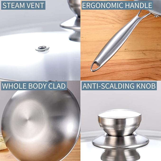 - Suitable for All Stoves:Works on all cook stovetops, include induction stove. The high quality stainless steels and the aluminum core make it dishwasher-safe and oven-safe up to 500°F.