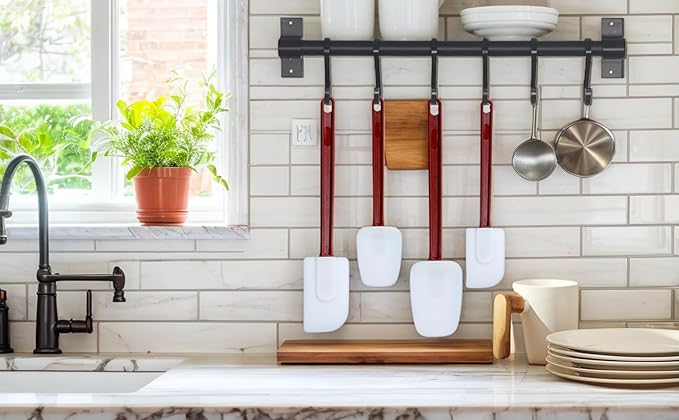 - 【Long Handle Design】The handle of this heat-resistant spatula is made of high-strength nylon that does not conduct heat and will not burn your hands while cooking. Also, the extended handle keeps hands away from boiling hot pots and pans, and the unique shape of the handle provides a comfortable grip that reduces wrist strain and makes it easy to hang