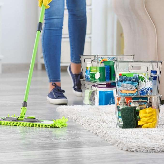 - PORTABLE & STACKABLE – Built-in, easy-grip side handles make it easy to transport from place to place. They also come with lids to help organize. These plastic storage bins are perfect for pantry organization and storage or kitchen organization. These clear storage bins are great for anywhere in your home.