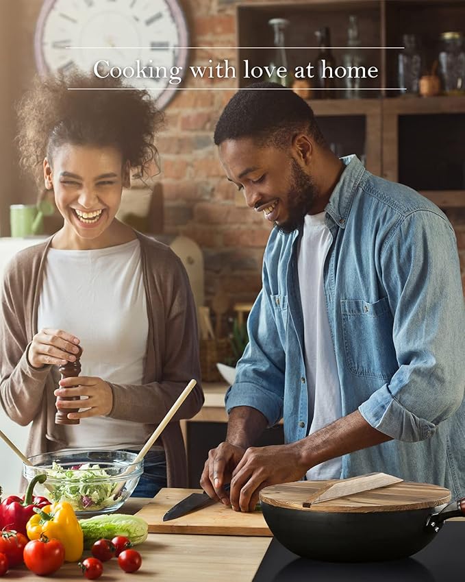 - EMBRACE A HEALTHIER & LASTING:The surface is nitrided, our woks are proudly Teflon-free. Although not a typical non-stick woks & stir-fry pans, rest assured, with the right seasoning, its performance only gets better! And what's more, its life is significantly extended, and the risk of rust is lessened.