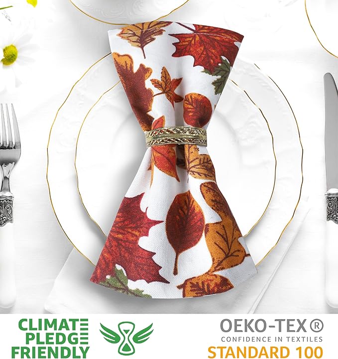 Urban Villa Cloth Napkins Leaves Print Dinner Napkins Set of 12 20X20 100% Cotton Absorbent Washable Durable Reusable Cloth Napkins Ideal for Farmhouse Party Thanksgiving Harvest Fall Dinner Napkins