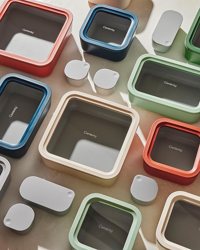- KEEP YOUR FOOD FRESH: Look forward to leftovers with Caraway’s easy-to-store, non-toxic food storage containers. This 14 piece set looks great and most importantly keeps your food extra fresh and organized.