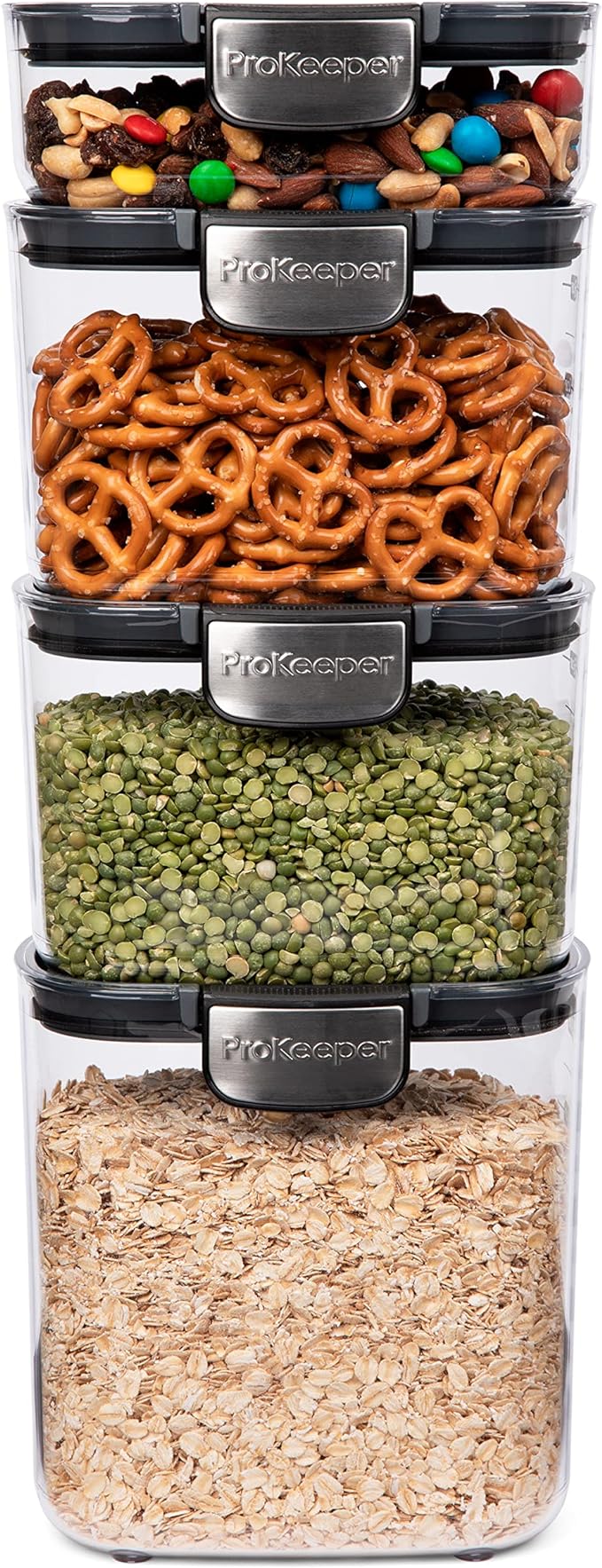 Progressive International ProKeeper+ 4-Piece Clear Plastic Modular Airtight Pantry Food/Snack Kitchen Storage Organization Container Canister Set