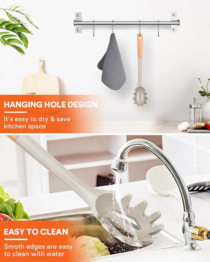 - The Most Thoughtful Design: The high-quality Nylon Core is more durable and keeps you away from the trouble of kitchen utensils rusting or breaking. The anti-scald Wooden handle is not easy to conduct heat and is more comfortable to hold than traditional utensils