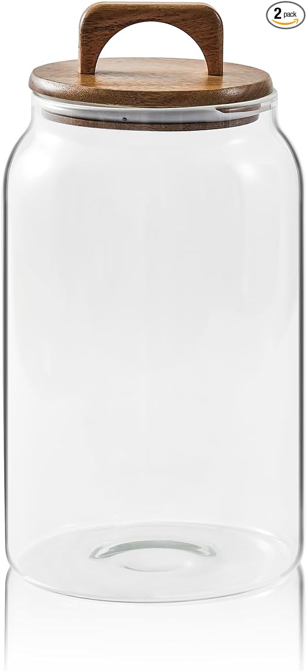 Sweejar Large Glass Candy Jar with Wooden Lid, 1 Gallon Glass Canister with Airtight Lid for Sugar/Flour Storage - 1 Pack