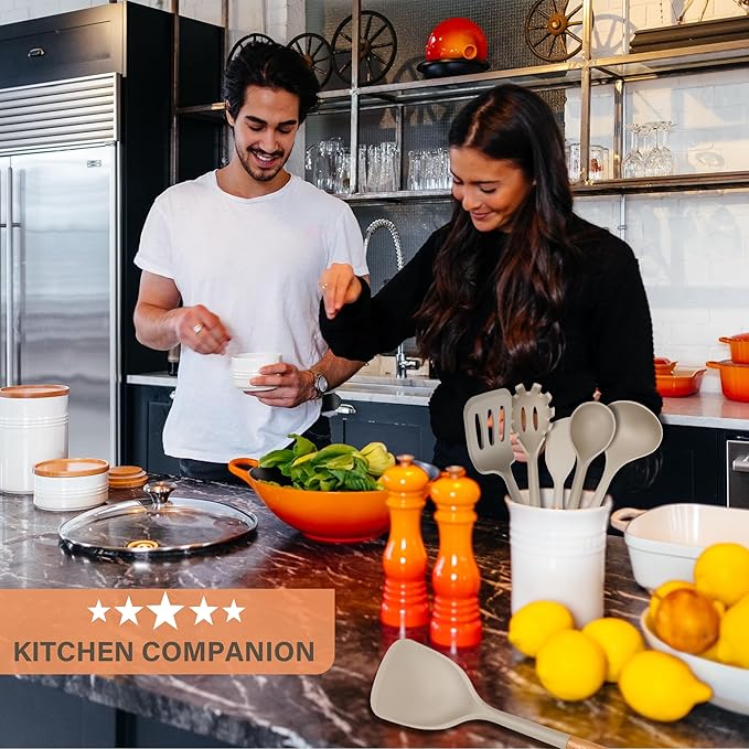 - HOLIDAY GIFT CHOICE: Our large utility silicone spoons for cooking has a stylish look and neutral color that matches many kitchen decoration styles. This silicone cooking utensils set for cooking and serving is a thoughtful gift for home cooks, cooking enthusiasts and cooking beginners