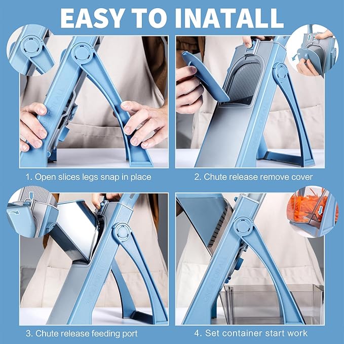- 【12 Months Satisfaction Warranty】 - Our vegetable chopper are safe and easy to assemble and use, please read the included instructions carefully before use. If you have any questions or issues regarding the vegetable slicer please do not hesitate to send us a message through Amazon and we will respond within 24 hours. We provide 12 months of warranty for each Jonscook mandonlie food slicer for kitchen.