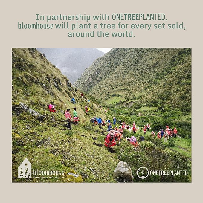 - ONE TREE PLANTED PER SET SOLD: In partnership with One Tree Planted, bloomhouse will plant a tree around the world for every set sold, keeping our planet healthy and thriving while encouraging acts of kindness and growth.