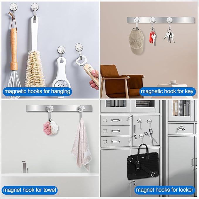- 【 Easy to Assemble 】 The products are very easy to disassemble. They will be great in any small space to help with storage and easy access. These heavy-duty magnetic hooks are suitable for anywhere and serve non-replicable purposes.