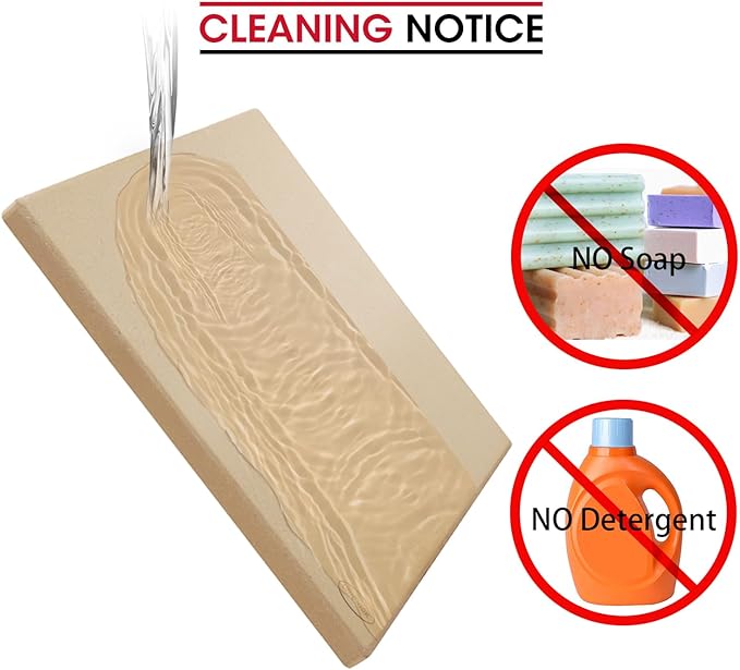 - Hand wash the cooled baking stone with warm water. Never use soap or detergent! Never season with oil or grease!
