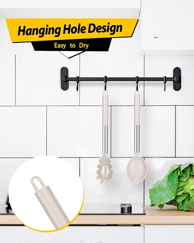 - Thoughtful Design : The good-quality 18/8 stainless steel keeps you away from the trouble of kitchen utensils rusting or breaking; This anti-scald silicone handle is not easy to conduct heat and is more comfortable to hold than traditional utensils