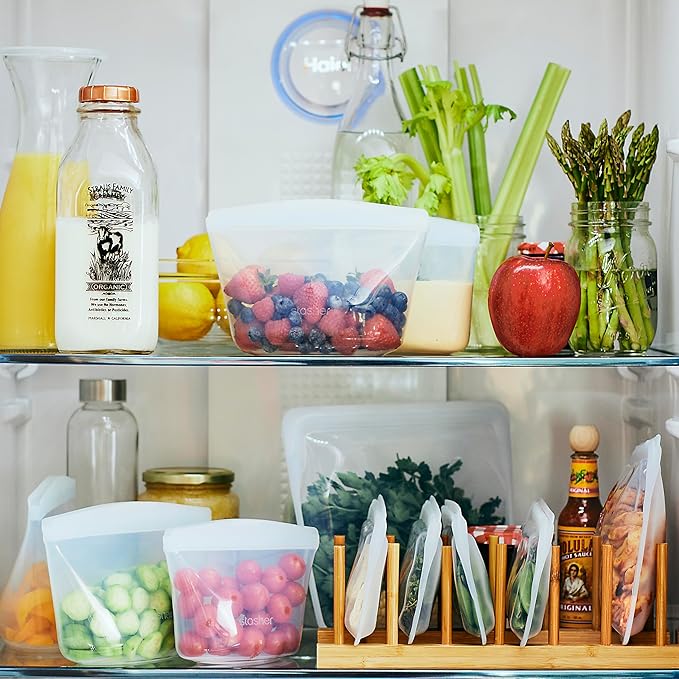 - REUSABLE, REWASHABLE CONTAINERS: Stasher silicone reusable storage bags make it easy to ditch single-use plastic and meet endless household needs. Safe for the dishwasher, microwave, oven (up to 425°F), and more.