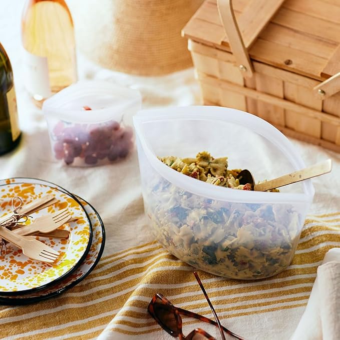 - BETTER SILICONE BAGS & BOWLS: Made with platinum food-grade silicone and a leak-free Pinch-Loc seal, these reusable food containers are free from lead, latex, phthalates, BPA, & BPS. Plus, every Stasher bag replaces 100s of single-use plastic bags per year.