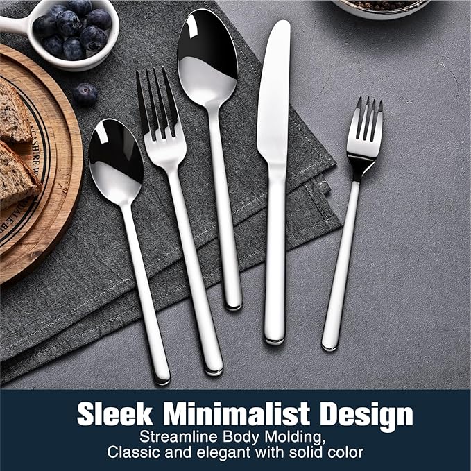 - Easy to Clean & Zero Waste: Mirror polished surface and streamline body molding make these kitchen utensils a breeze to clean. With a dishwasher - safe feature, cleaning up after meals is effortless. The timeless design of this silver cutlery set complements most tableware, making it a long - lasting addition to your collection