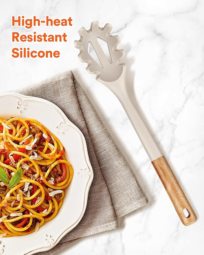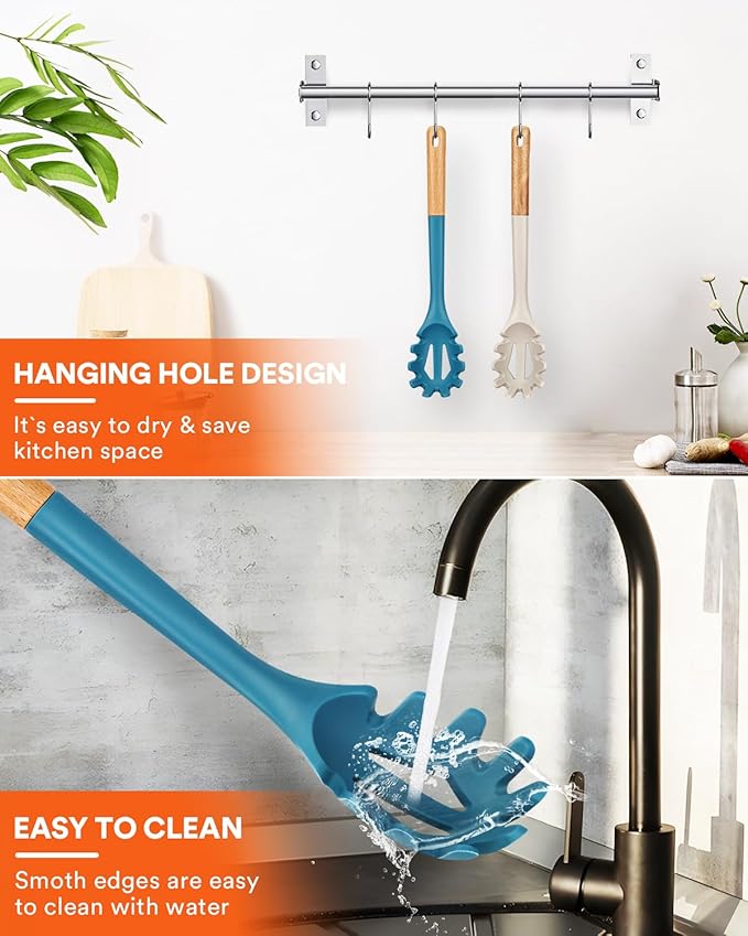 - Just Want To Provide The Best For You: The soft food-grade silicone head is designed for noise-free cooking. Unique sawtooth design, easy to pick up noodles. Whether it is used for stirring or serving spaghetti. Our silicone pasta fork will add more fun to your kitchen