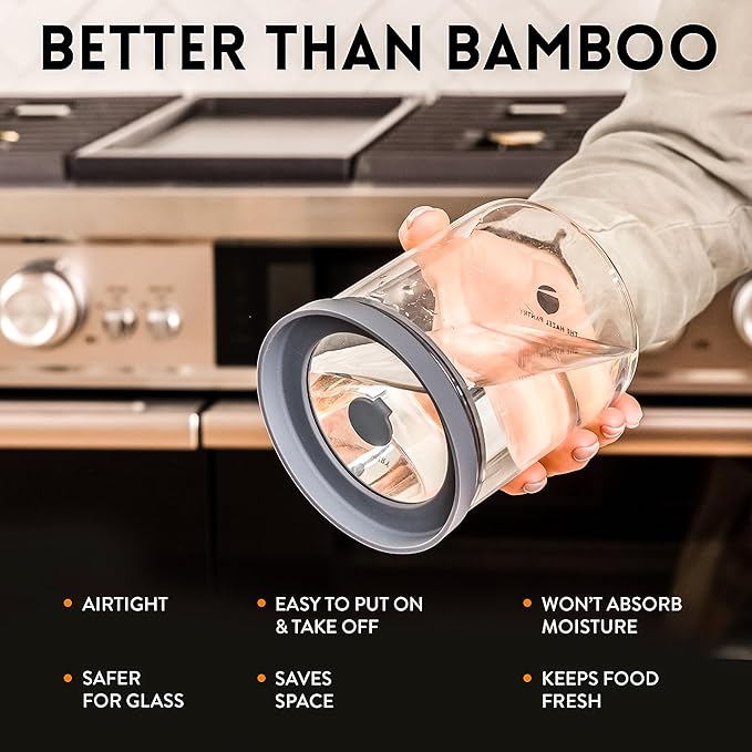 - Exclusive Vent Design Locks in Freshness: A proprietary venting design on the silicone cover locks in freshness; Simply “pop” open the valve before placing the lids on your canisters and close valve to store pasta, snacks and flour without moisture