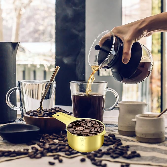 - 【Convenient Clear Marking】The measuring cup engraved with the metric and US marking (30ml | 1/8 CUP) on the handle which will help you reduce any measuring errors for cooking, baking or coffee. The cup tin also has an embossed marking with 1/16 cup to meet your others cooking need.