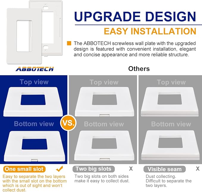 - Child safe design:Screw-less cover prevents children from removing the screws. Effectively protects children from touching dangerous outlets.
