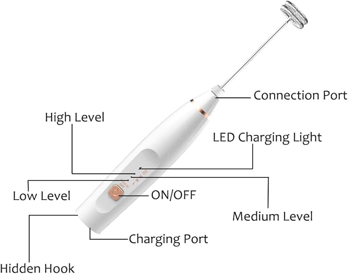 Milk Frother Handheld Foam Maker with 2 Stainless Stirring Head 3 Speed Rechargeable Electric Blender Milk Frother Wand Drink Mixer for Cappuccino Matcha Latte Hot Chocolate Protein Powder Egg (White)