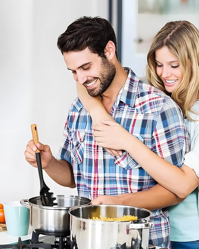 - 【The Most Thoughtful Design】: The high-quality Nylon Core is more durable and keeps you away from the trouble of kitchen utensils rusting or breaking. The anti-scald Wooden handle is not easy to conduct heat and is more comfortable to hold than traditional utensils